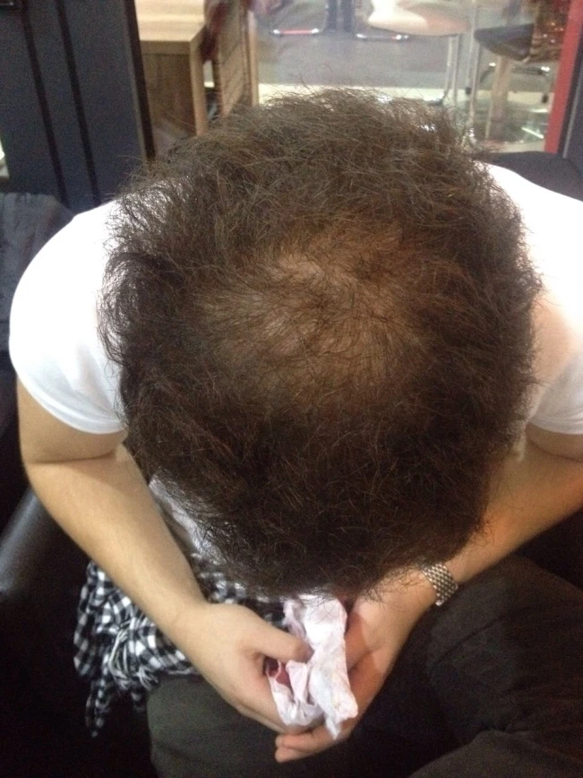 La nouvelle croissance des cheveux dépend du degré de rétraction des follicules pileux : plus ils sont avancés, plus les cheveux qui repoussent sont fins. Dans tous les cas, il faut ici faire preuve de patience.