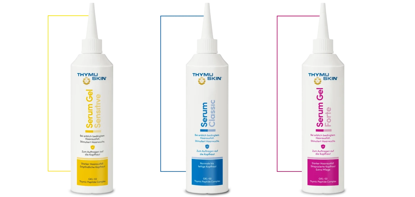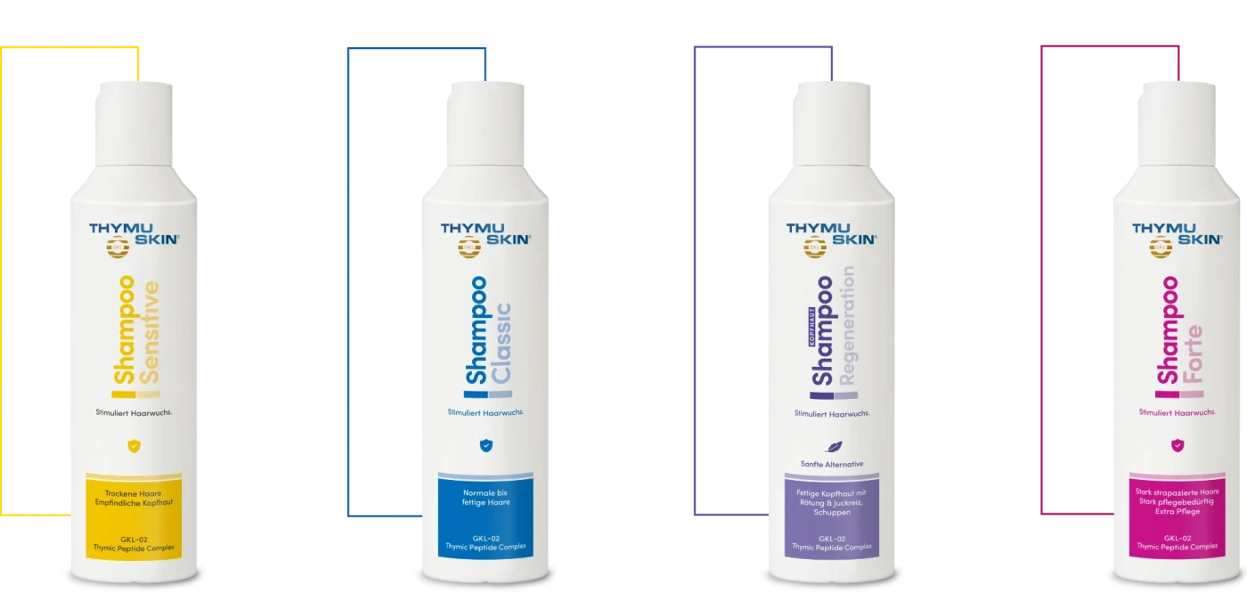 Mix & Match: gli shampoo e i sieri Thymuskin possono essere combinati tra loro. Si consiglia di rivolgersi a un medico in caso di perdita di capelli.